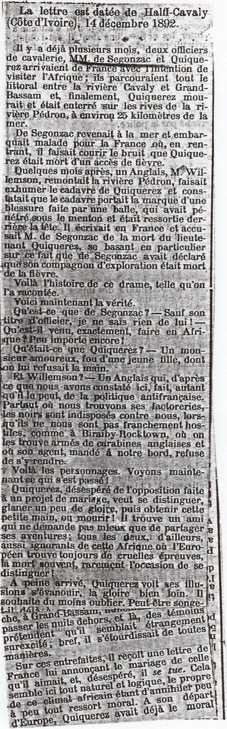 La lettre est datée de Halff-Cavaly ( Côte - d'Ivoire )14 Décembre 1892