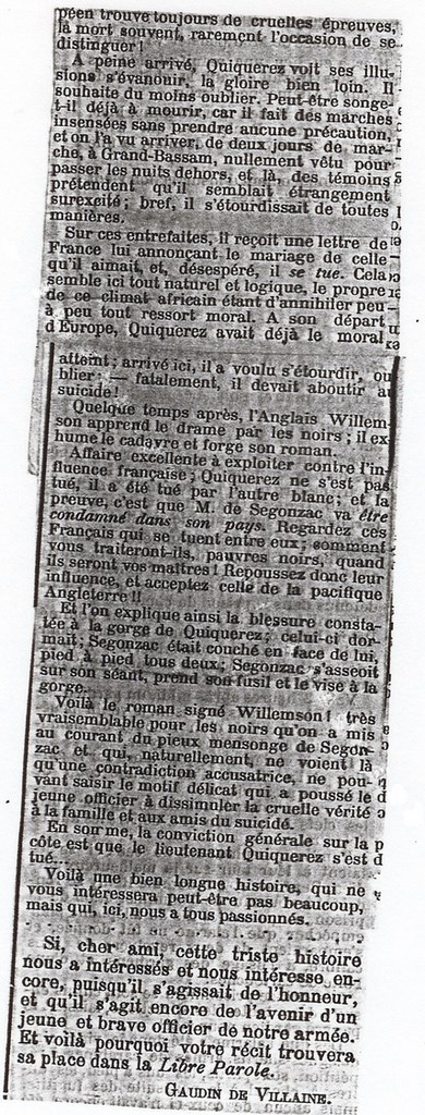 L'Affaire QUIQUEREZ - DE SEGONZAC 1891 - 1893