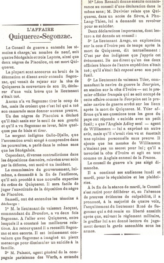 L'Affaire QUIQUEREZ - DE SEGONZAC 1891 - 1893
