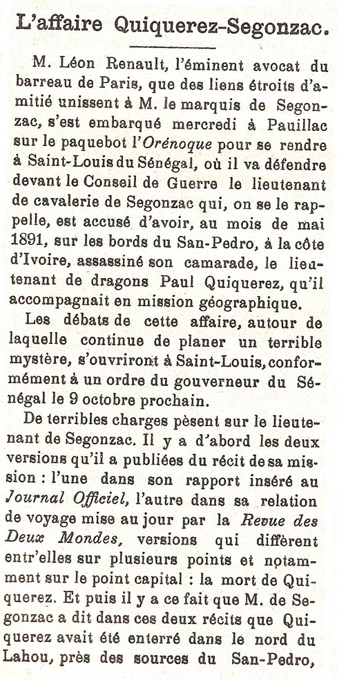 L'Affaire QUIQUEREZ - DE SEGONZAC 1891 - 1893