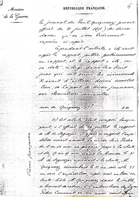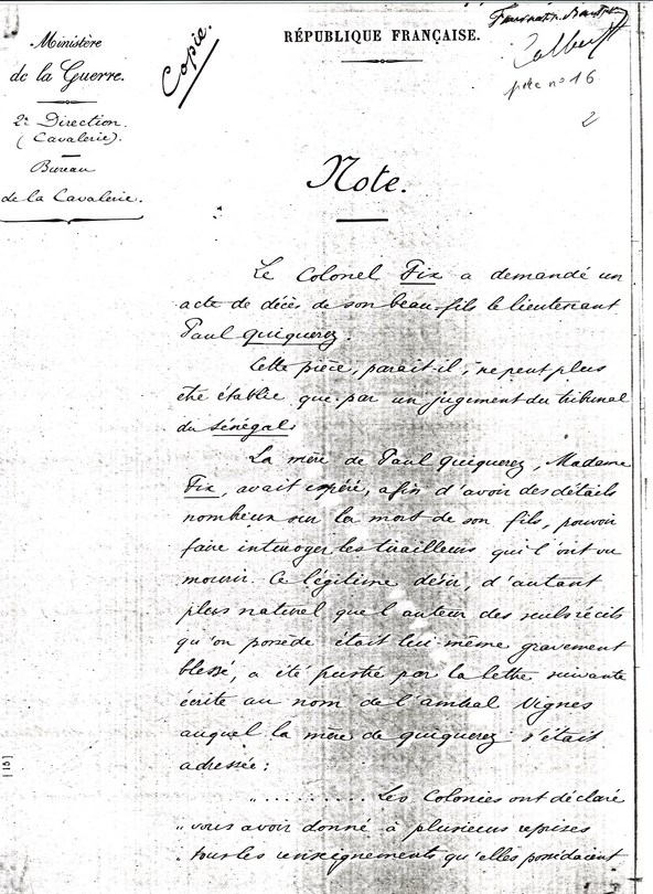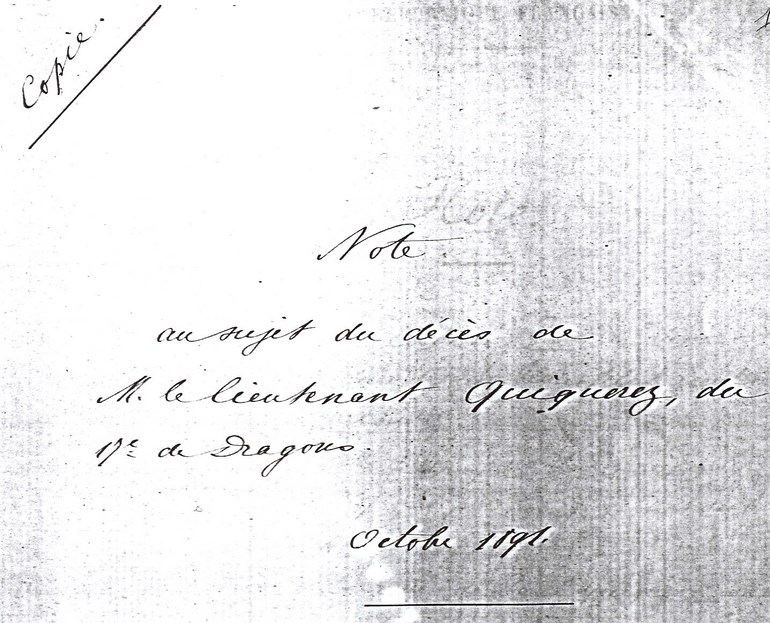Note au sujet du décés de Mr le Lt QUIQUEREZ DU 17ème Dragons